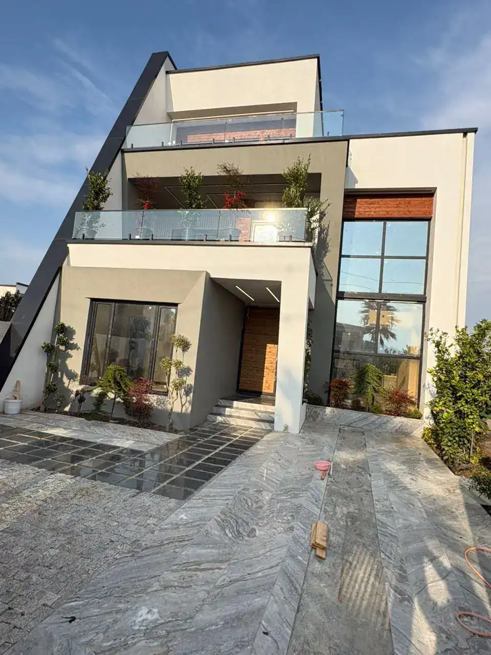 تریبلکس نما مدرن ۷۰ مترزمین ۵۰۰ متربنا چهار خواب سه کنتور نصب شهرکی با نگهبانی منطقه تهرانی نشین سندتک برگ تمام امکانات رفاهی نزدیک به ویلا