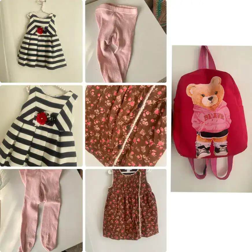 یراهن جنس عالی شیک و ترند دخترانه تا یک سال و نیم فقط ۴۰۰ پیراهن سورمه ای سفید تا یک سال و نیم در حد نو تمیز فقط۳۰۰ کیف در حد نو تمیز سالم فقط۱۸۰ سارافون گل گلی جنس عالی تا دو سال فقط۲۵۰ جوراب شلواری هدیه معاوضه با لباس ترند و شیک تا دوسال و نیم