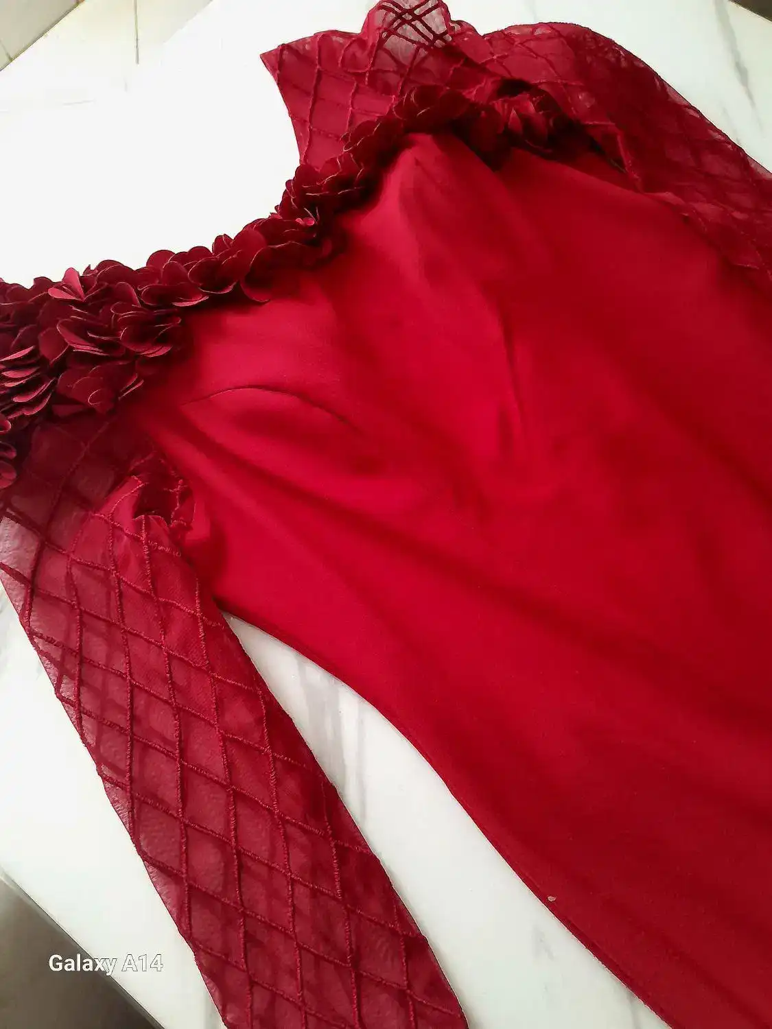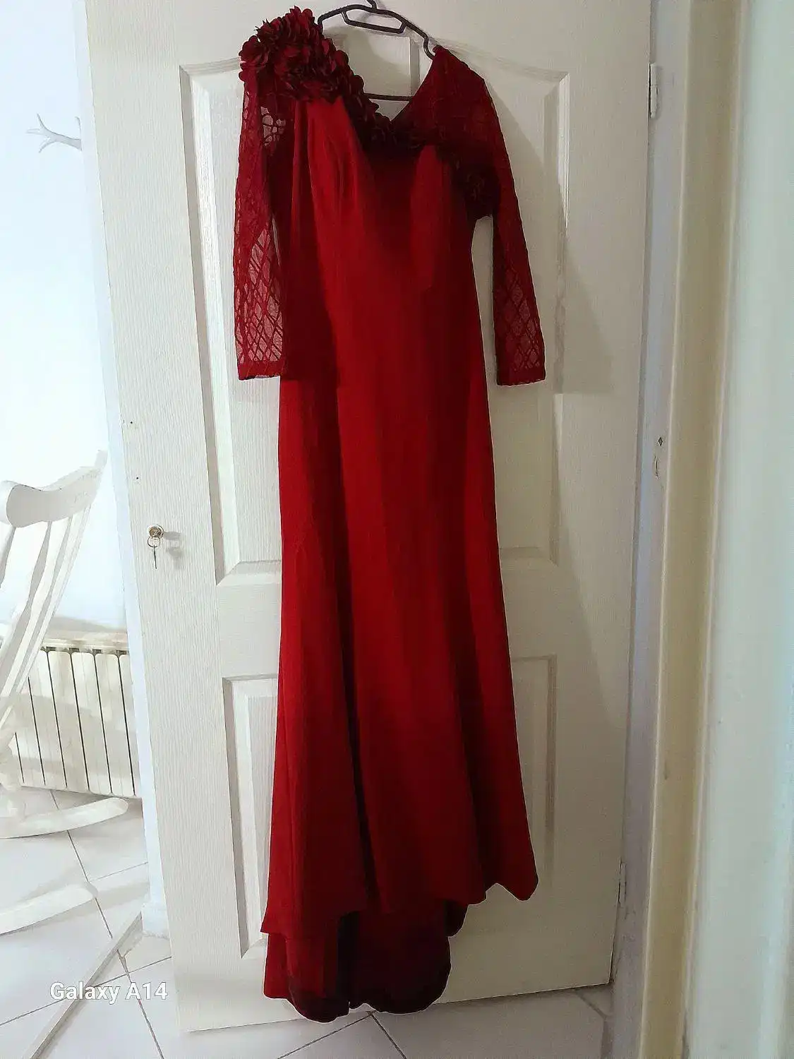 لباس مجلسی کمرباز دنباله دار مخمل مشکی ، پارچه کشی هست و از سایز ۳۶ تا ۴۲ میخوره ، قیمت ۳ میلیون تومان ، پیراهن قرمز آستین توری سایز ۴۰.۴۲ دنباله دار و کاپ دار قیمت ۵۰۰ تومان