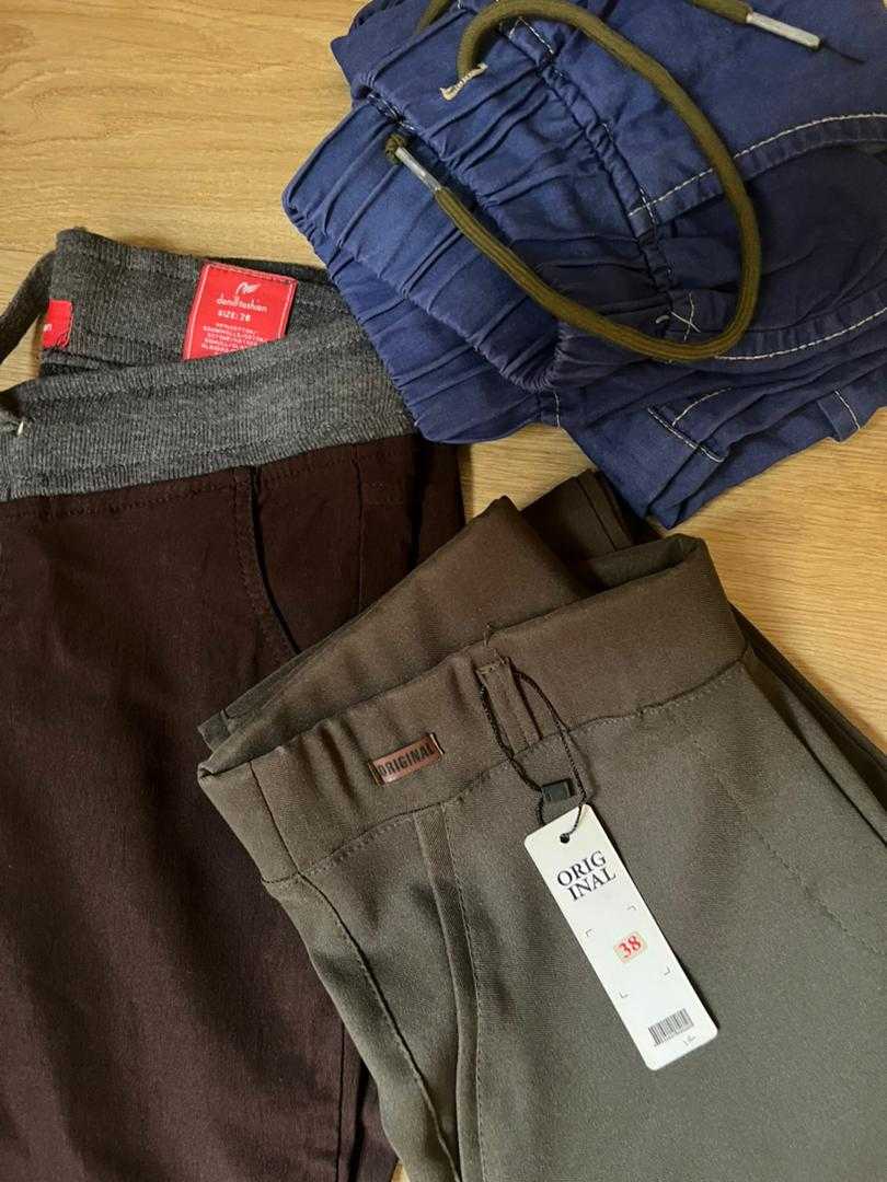 شلوارها همه نو سایز آبی مناسب ۱۰ تا ۱۲ سال یشمی سایز ۳۸ قهوه ای دمپا سایز ۳۶ قیمت ۳۰۰ معاوضه با هر چی