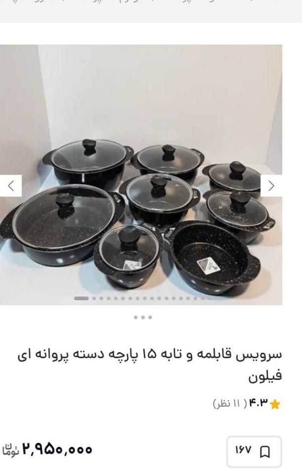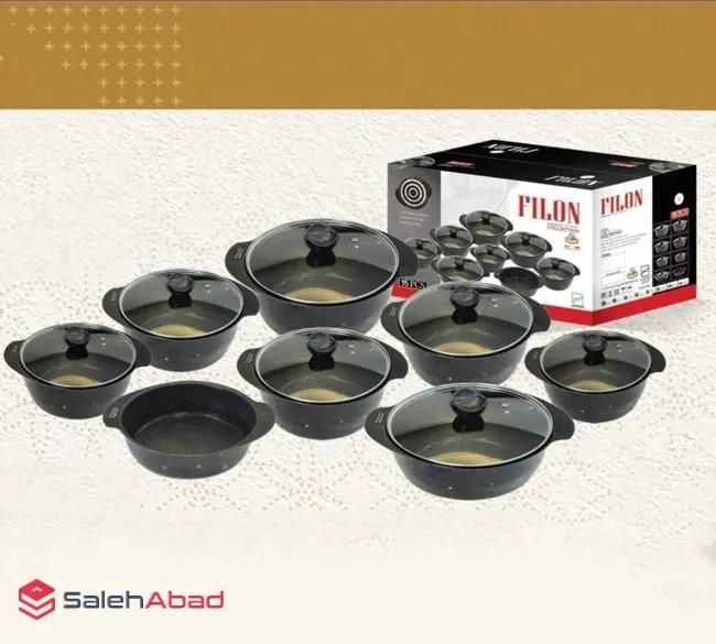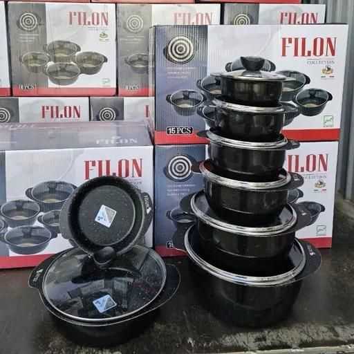 پرداخت درب منزل میباشد پخش به صورت عمده و تکی تمامی مدل ها و مارک های معروف قابله موجود میباشدماهیتابه و قابلمه تک موجود است پایه قابلمه ۶و۵طبقه موجوده سرویس قابلمه کهنه خودتونو و به ما فروشید. سرویس پخت و پز فیلون 15 پارچه پروانه ای « فیلون » جدیدترین و شیک ترین سرویس موجود در بازار با قیمتی باور نکردنی این سرویس شامل شش عدد قابلمه و دو عددتابه دربدار در سایزهای بسیار کاربردی طراحی شده سایز قابلمه 14 مناسب یک نفر ، سایز قابلمه 16 مناسب 2 نفر ، سایز قابلمه 18 مناسب 3 نفر ، سایز قابلمه 20 مناسب 4 نفر ، سایز قابلمه 24 مناسب 6 نفر ، سایز قابلمه 28 مناسب 10 نفر ، تابه 28 دیواره بلند دربدار ، تابه 18 دیواره بلند با درب مشترک ، طراحی این سرویس به صورت پروانه ای هست که ظاهری خیلی شیک با دستهای یه تیکه میباشد برای استفاده داخل فر وشستشوی با ماشین ظرف شوی بسیار مناسب هست گرانیت داخل ظروف از بهترین نوع گرانیت در شرکت معتبر هلنا تولید شده برند فیلون ورق ضخیم 2.5 میل واقعی با دستهای یه تیکه مدل (پروانه ای ) دارای ۲سال ضمانت وزن 10کیلوگرم