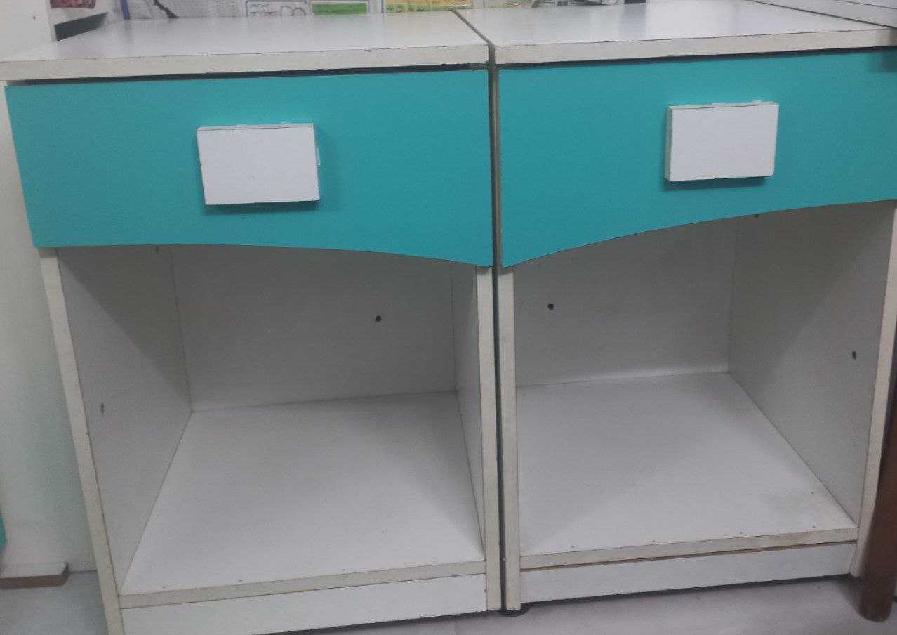 دو عدد میز باکس دار کشودار کنار تخت جدا از هم یه بغل هم مثل عکس بعنوان میز تحریر میشه استفاده کرد خیلی جادار و کاربردیه سالم جنس چوب محکم دوتاش باهم ۱میلیون تومان... محدوده شهرری